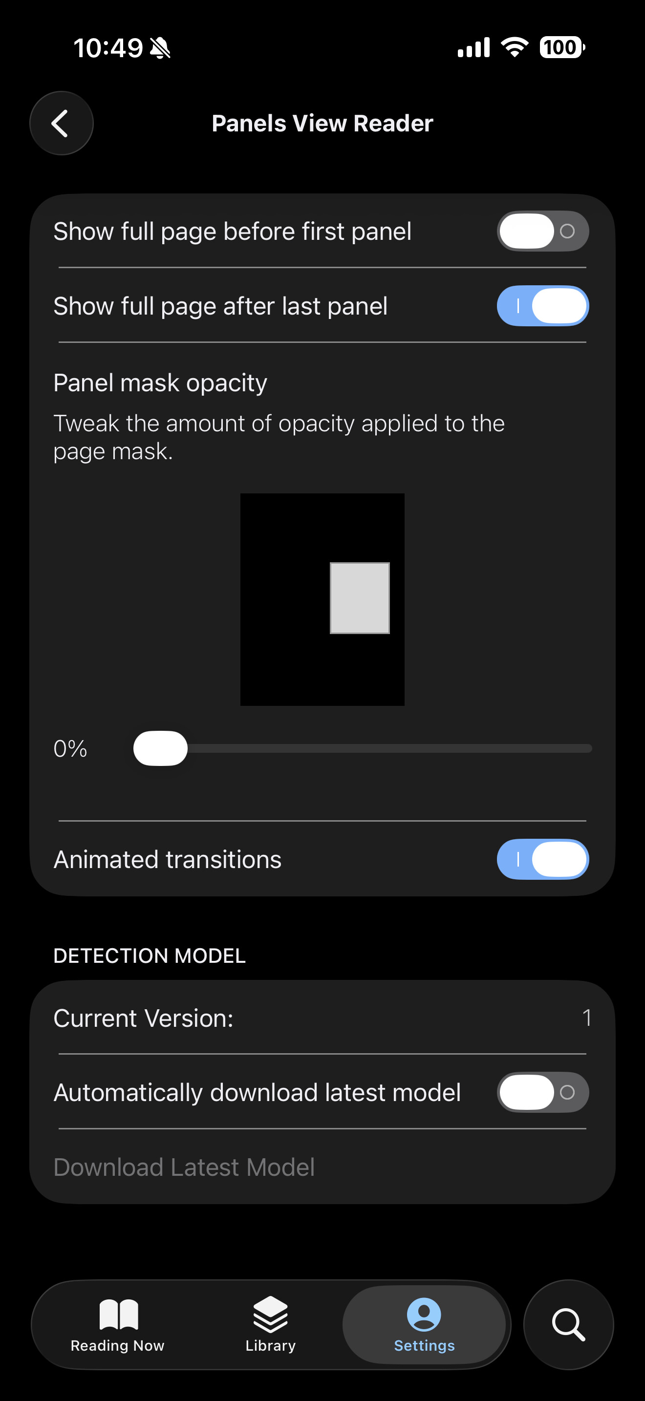 Switched to new iPhone 17 pro and the panel reader Detection model is stuck at 1. Toggling automatically download latest model doesn’t let me manually download latest version. On my old phone it’s at version 5.